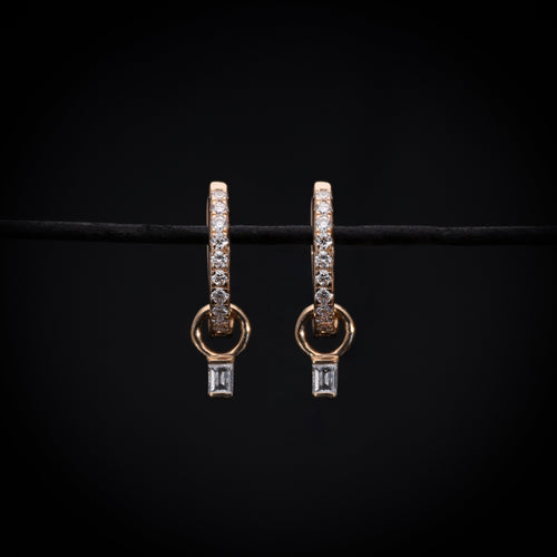 Baguette Charms Take your huggies to the next level with this classic baquette charm. Collection: Charms Setting: Pave Type: Pairs with Huggies Metal: 14k Yellow Gold